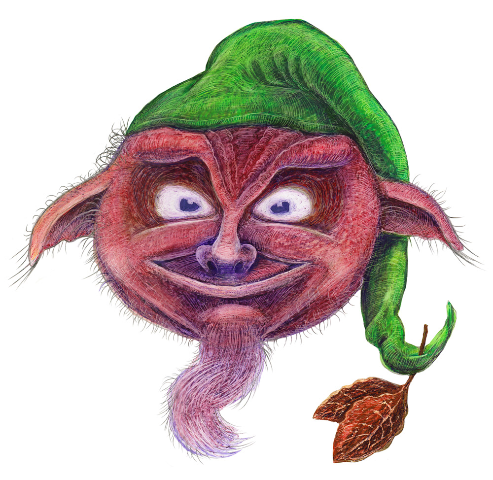 I created a series of folklore illustrations a while ago and have been adapting them into a series of book covers for illustrated guides. This one is about fruit, nut and berry faerie folk. The illustration was drawn with a scratchboard technique on card using etching tools in layers of oil pastels and metallic paint for the eyes and leaves.